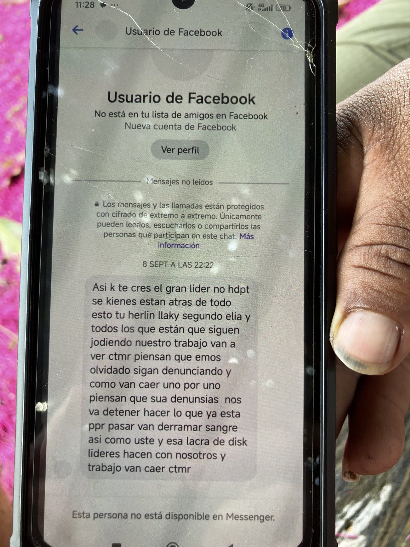 The Guard’s leader, Segundo Pino, shows me a recent death threat on his phone, warning him to stop reporting the narcos to the authorities. In badly written, profane Spanish, it warns that “so-called” indigenous leaders like Segundo will “fall one by one” and that there will be “bloodshed”.