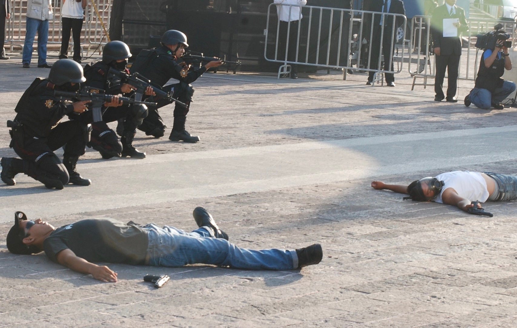En la sofocante plaza central de Monterrey, la capital financiera de México, los agentes de la Fuerza Civil se agacharon en una formación de combate cerrada, alzando sus rifles AR-15 contra los matones del cártel. Los criminales estaban armados y eran despiadados, pero no estaban acostumbrados a luchar contra agentes tan organizados, y fueron rápidamente eliminados sin víctimas civiles. Sobre ellos volaba una formación de helicópteros que parecía una escena de la película "Apocalypse Now".