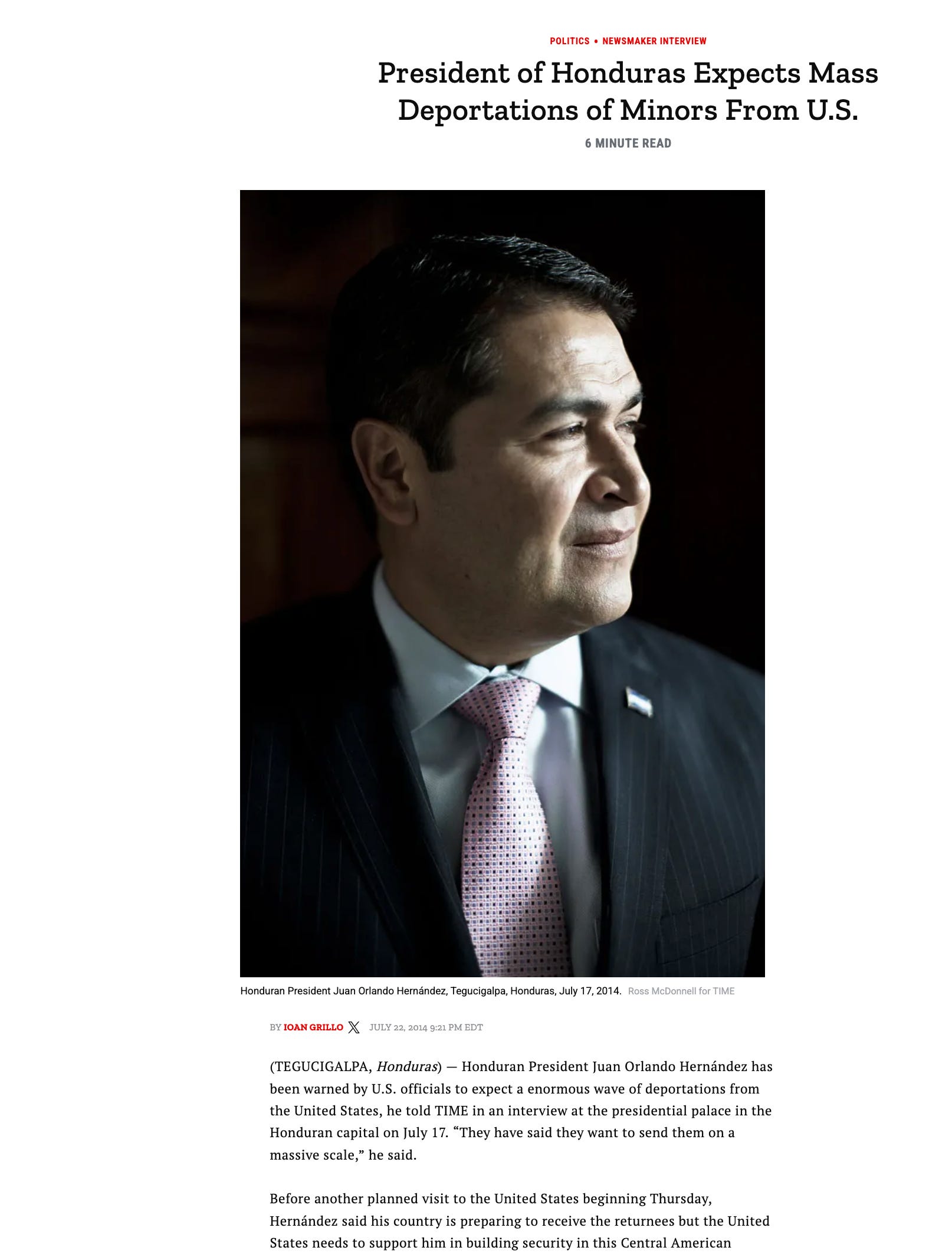 Cuando entrevisté al entonces nuevo presidente de Honduras, Juan Orlando Hernández, en 2014 para la revista Time, este se mostró interesado en obtener ayuda de Washington para combatir los cárteles y las pandillas. Estados Unidos tenía la responsabilidad de pagar, argumentó, porque eran los consumidores de drogas estadounidenses quienes financiaban a los narcos que causaban estragos en Latinoamérica.