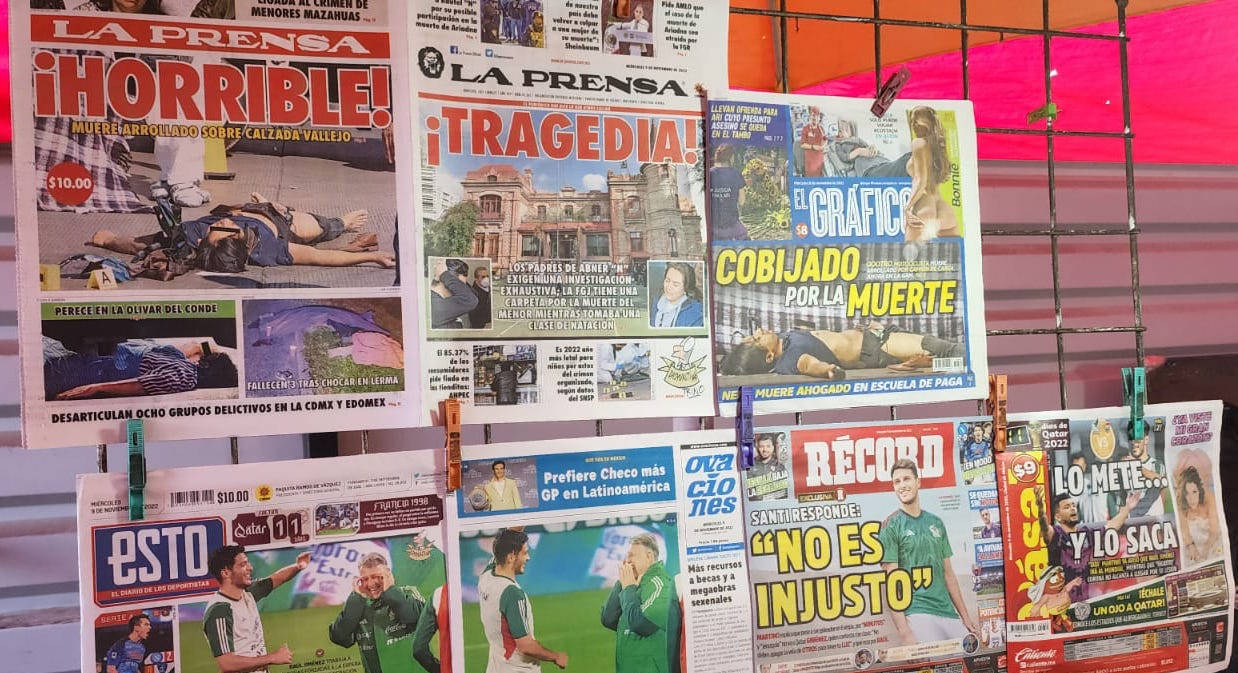 The photos and details of the bloody victims are referred to as “la nota roja” or “red news” and decorate tabloids, alongside scantily-clad girls and football players. They also provide a valuable public service by keeping track of the violence, and making it harder for the government to hide murder numbers. When Mexico’s drug war escalated in the 2000s, it was nota roja reporters around the country who first spotted it, helping compile “execution meters” of the rising piles of cadavers.