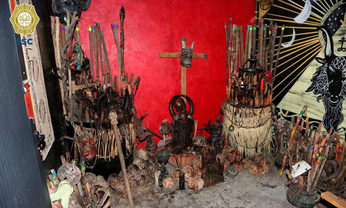 On a vist to the Tepito barrio, I see what his police operations look like on the ground. Around the Peralvillo street, considered a heart of operations for La Union mob, the police have established a permanent presence, with armored vehicles on the corners and dozens of uniformed officers. Police were also controlling the entrance to the vecindad, or residential building, where the 42 skulls had been found (alongside a Satanic altar).