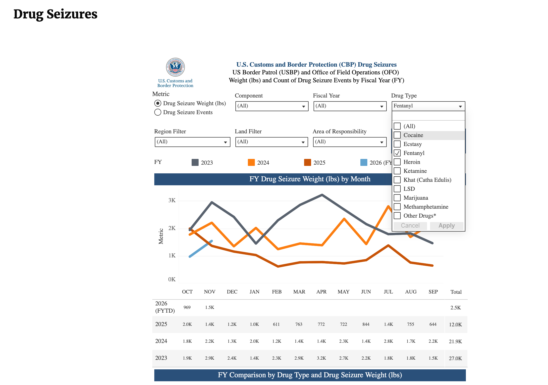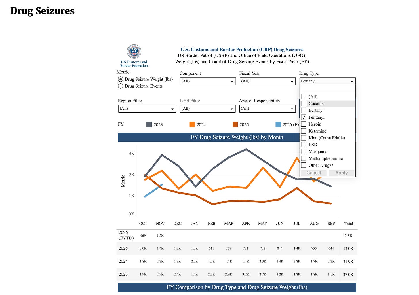 The Sheinbaum-Trump relationship could have been one of conflict, and unilateral U.S. military strikes inside Mexico in 2025 were a real possibility. However, President Claudia Sheinbaum managed to placate Trump by doing three main things when it came to security: transferring over 50 (alleged or convicted) top cartel operators into U.S. custody; cratering migrant smuggling; and reducing fentanyl. Overall, she took the Trump heat away from Mexico and it went to Venezuela, although as these numbers show, fentanyl has been creeping back now while nobody is watching.