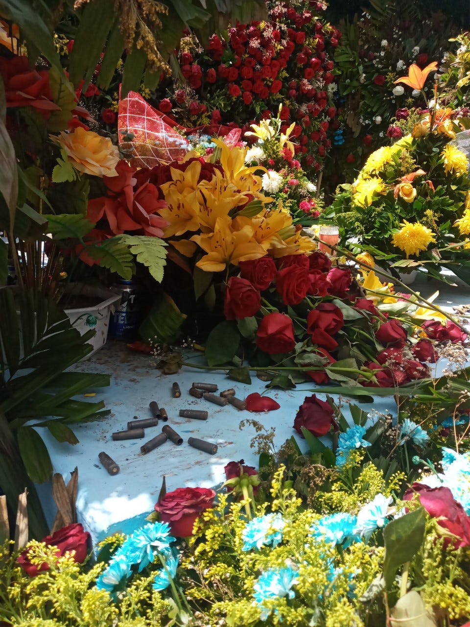 Bullets, beer and flowers. A tomb in rural Sinaloa.